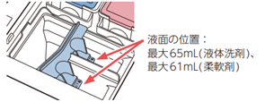 ● 液体洗剤・柔軟仕上剤の種類によっては流れにくいものがあります。その場合は、同量の水でよく溶かしてから投入部に入れてください。