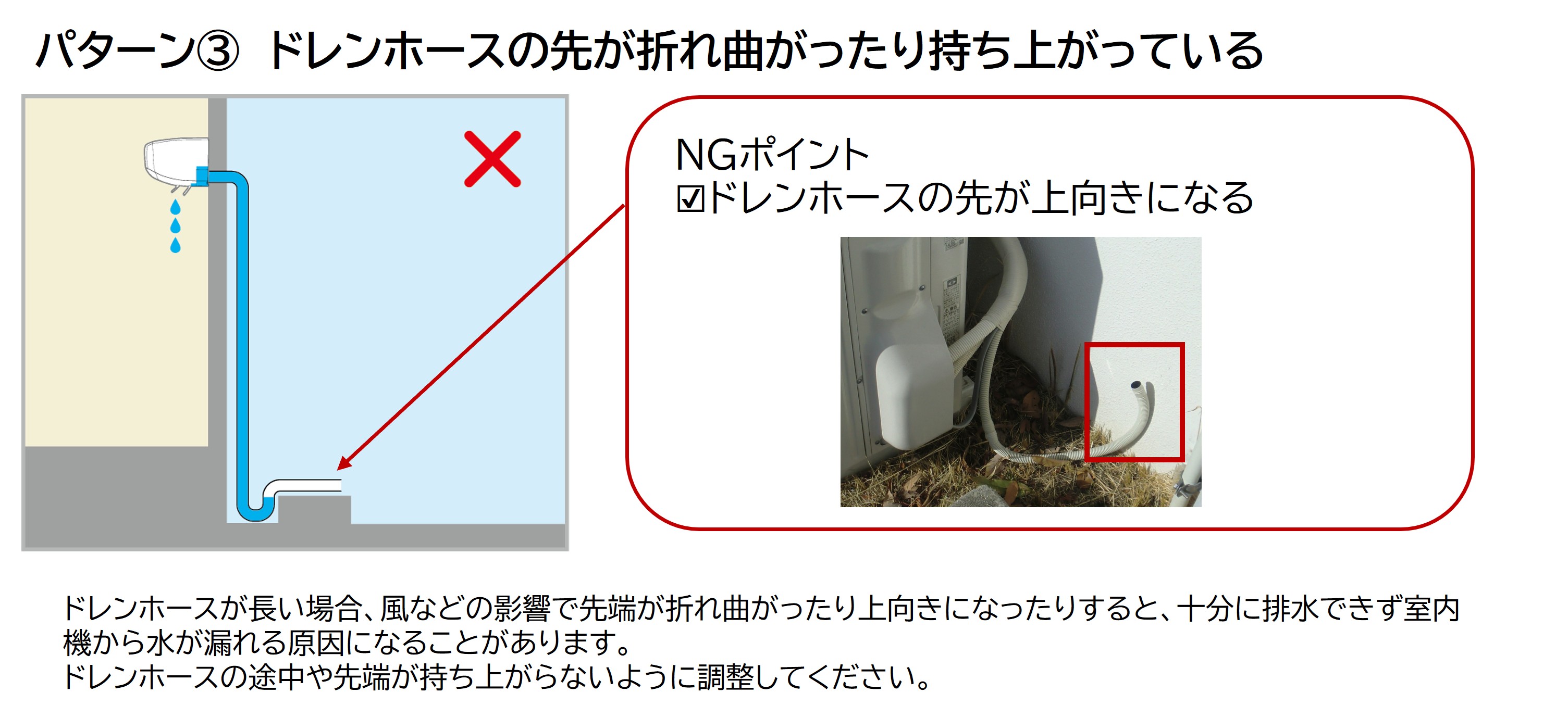 ■考えられるドレンホースのトラブルパターン