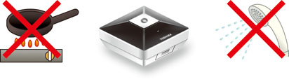 ボイスコントローラとエアコンの間に、物を置かないでください。信号がさえぎられ、正しく操作できないことがあります。また、エアコンに対して斜めに置くと、送受信できる距離が短くなります。