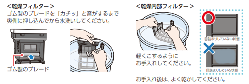 乾燥内部フィルターのお手入れ