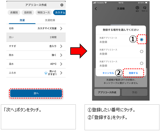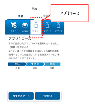 また、アプリ内で本体登録済カスタムアプリコース設定すれば、設定された内容で運転できます。※TW-127X8非対応