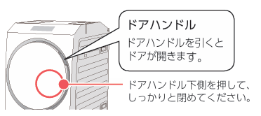 →ドアを閉めるときは赤丸部分を押しながらドアを閉めてください